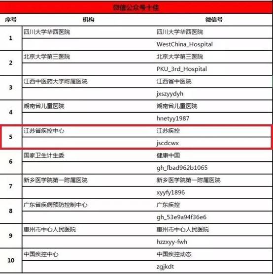 “江苏疾控”微信号从参赛的196个医疗卫生机构官方微信中脱颖而出,荣获“十佳医疗卫生行业官方微信”称号!